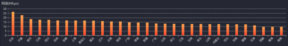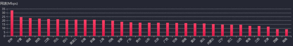 中国电信实测4G下载网速最快的是吉林,达到了33.16Mbps,宁夏和福建紧随其后,对应的网速分别是24.39Mbps和23.16Mbps。上传网速最快的是北京,达到了26.58Mbps,宁夏(22.75Mbps)和贵州( 18.32Mbps)分列2,3名。