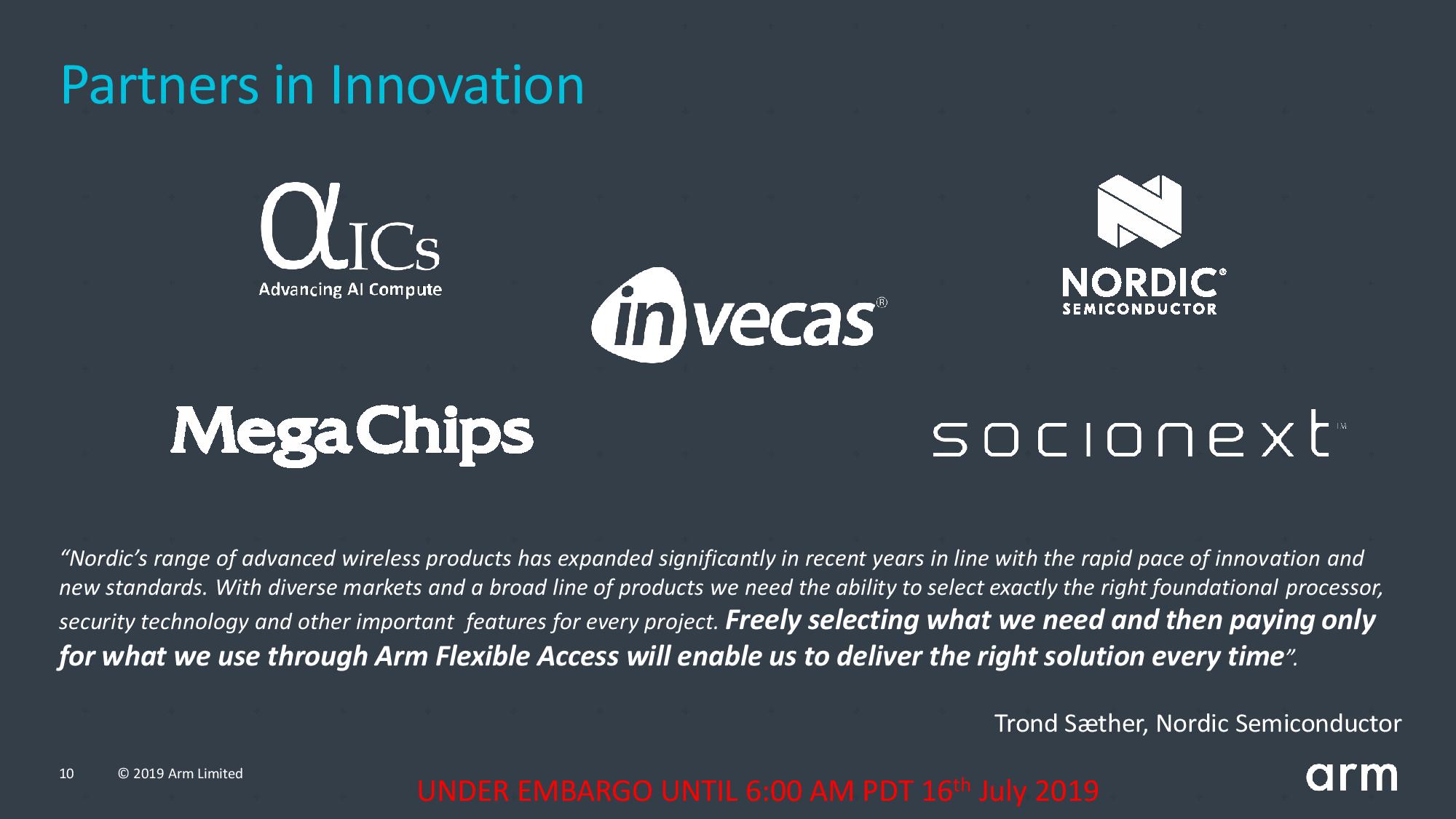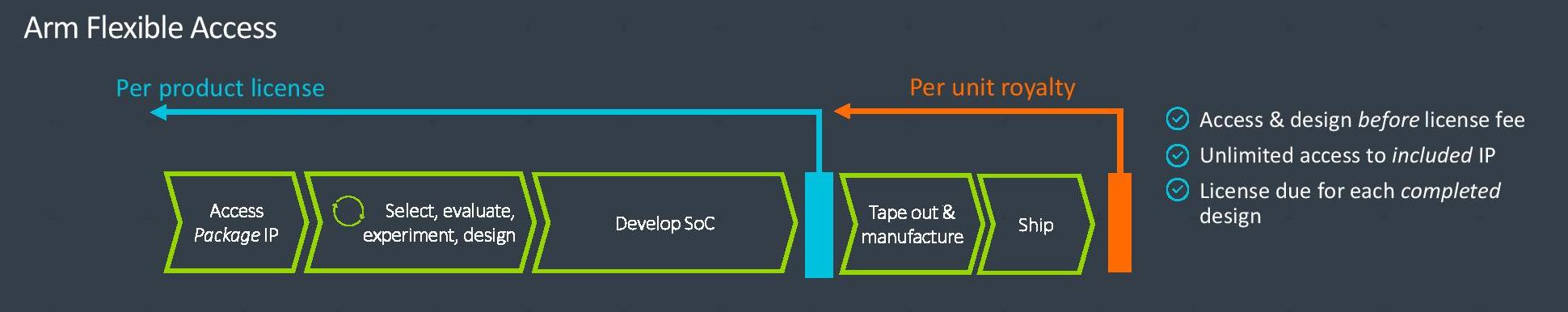 ARM(安谋)公司今天(7月15日)宣布推出全新的灵活接入(Flexible Access)式IP授权方式。想要使用ARM IP组合构建CPU、SoC芯片的客户,如果选择灵活接入,那意味着他不需要一开始就支付完整的授权费,而是可以先免费访问ARM的技术组合包,最后根据开发成品中实际所用的部分支付授权IP费用。