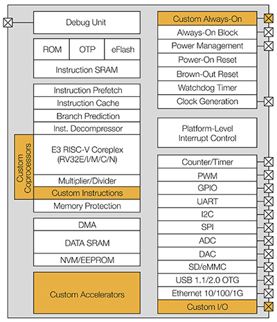 图2 采用RISC-V ISA的E300开源32位元MCU家族。
