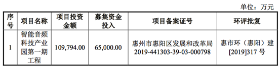 据招股书披露,此次迪芬尼声学拟募资6.5亿元用于投建智能音频科技产业园第一期。