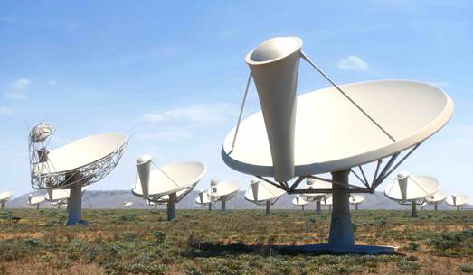 SKA是国际天文界计划建造的世界最大综合孔径射电望远镜,其接收面积达一平方公里,比目前最大厘米波综合孔径望远镜JVLA灵敏度提高50 倍、搜寻速度提高10000 倍。SKA最终将建设上千面反射面天线和一百多万个低频天线,所有这些望远镜被等效为一个反射面积高达1平方公里的超大望远镜。