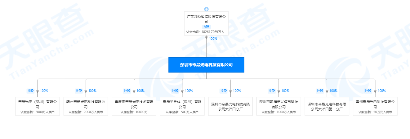 此外,重庆市帝晶光电技术有限公司、深圳市帝晶光电科技有限公司大洋田第二分厂、帝晶光电(深圳)有限公司和深圳市帝晶光电科技有限公司大洋田分厂皆为深圳市帝晶光电科技有限公司的百分百控股子公司。
