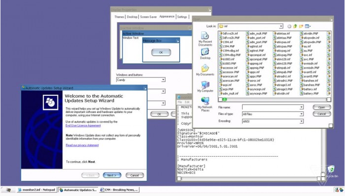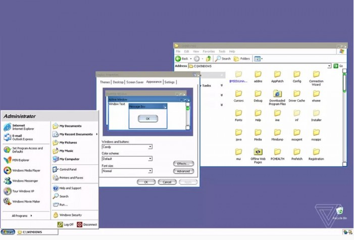 其中一款主题标记为 “Candy”,提供了和苹果 Aqua 相似的外观设计,虽然这个主题并不完整,但 Windows XP 的开始按钮以及各种按钮和UI元素的主题明显与苹果的Aqua一致。