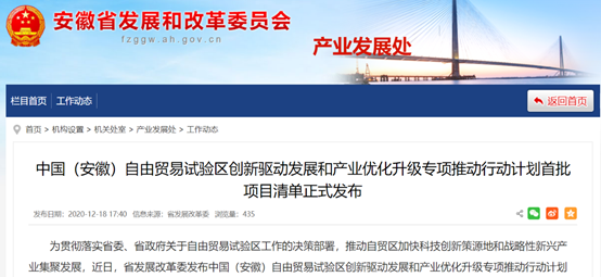 近日,中国(安徽)自由贸易试验区创新驱动发展和产业优化升级专项推动行动计划首批项目清单正式对外发布。