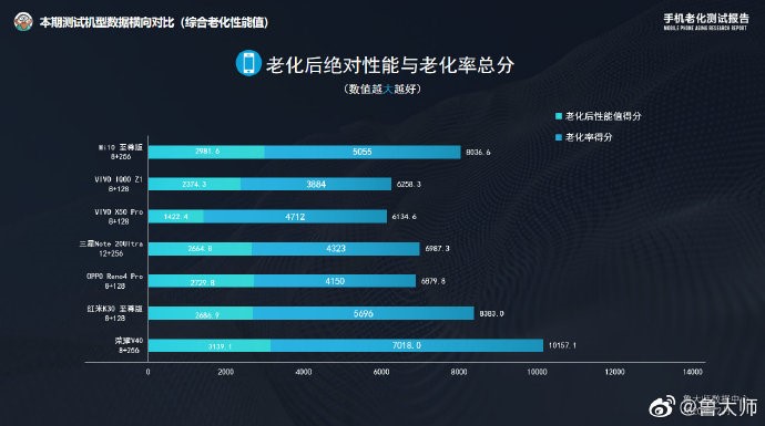从数据来看,荣耀V40无论是在测试项目平均老化率、测试项目老化后性能剩余、老化后绝对性能与老化总分跟其他机型相比,都处于领先优势。