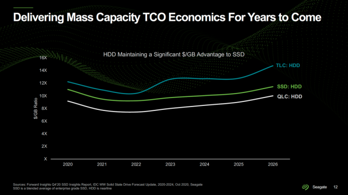 快速提升硬盘的容量对于维持希捷存储产品的竞争力非常重要,但容量只是其中的一部分。连续读/写速度以及每 TB 的随机 IOPS 效能也很重要。虽然读/写速度随着扇区密度越来越高,但每 TB 的 IOPS 效能却随着硬盘机容量的增加而下降。数据中心运营商希望硬盘能够提供或多或少相似的每TB IOPS性能,因为这将影响其服务质量。如果每TB的IOPS下降,数据中心必须以某种方式缓解,这就需要额外的投资。