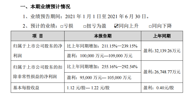 6月30日晚间,恩捷股份公告,预计上半年盈利10亿元-10.9亿元,同比增长211.15%-239.15%,湿法锂电池隔离膜的产量和销量持续稳定增长。