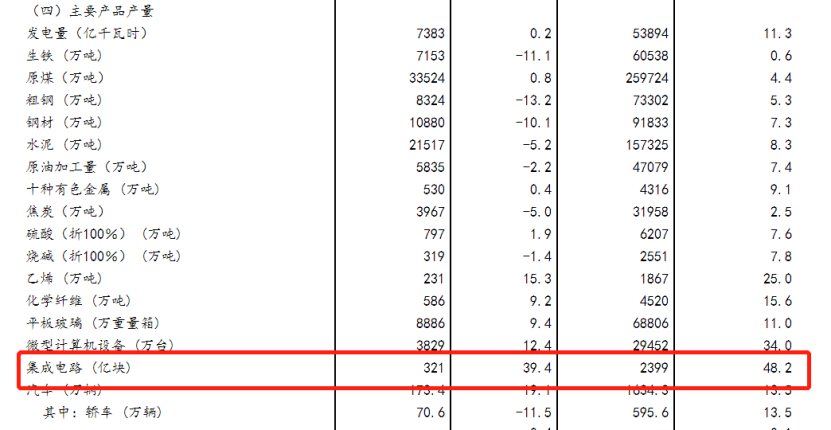 2021年1-8月份主要指标数据显示,1-8月,集成电路产品产量达2399亿块,同比增长48.2%;8月,集成电路产品产量达321亿块,同比增长39.4%。