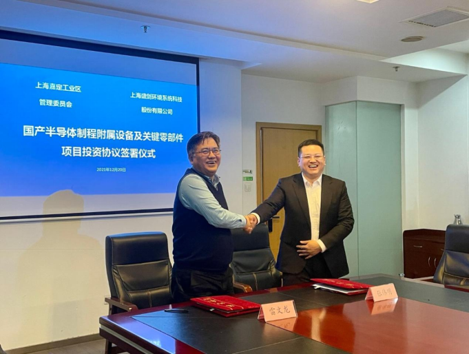 12月20日,上海嘉定工业区管理委员会与上海盛剑环境系统科技股份有限公司举行《国产半导体制程附属设备及关键零部件项目》签约仪式。