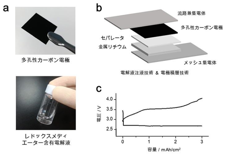 与其他处于研究层面的LABs一样,该电池依靠锂为负极,氧用于多孔碳正极。该设备中含有10个堆叠电芯,尺寸为4 cm×5 cm,单层电芯中带有2 cm×2 cm的电极。研究人员表示:“在堆叠式电芯结构中,氧气需要在气体扩散层中沿水平方向传输。此后,氧气需要进一步向垂直方向输送,才能穿过整个正极部分。”