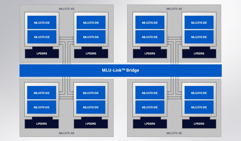 ▲ MLU370-X8中整合了双芯片四芯粒思元370