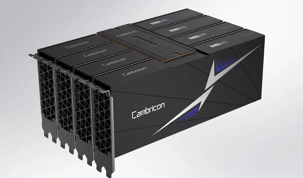 2022年3月21日,寒武纪正式发布新款训练加速卡MLU370-X8。MLU370-X8搭载双芯片四芯粒思元370,集成寒武纪MLU-Link™多芯互联技术,主要面向训练任务,在业界应用广泛的YOLOv3、Transformer等训练任务中, 8卡计算系统的并行性能平均达到350W RTX GPU的155%。