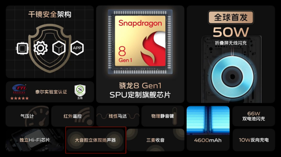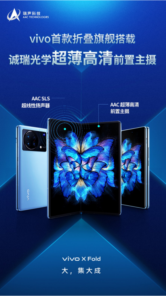 作为vivo首款折叠屏手机,vivo X Fold无疑最为吸睛,其配备了全球首款内外120Hz E5双主屏,内外屏均采用3D超声指纹,采用航天级浮翼式铰链、UTG超韧玻璃,支持多角度悬停。在音质及拍照方面,X Fold搭载了来自瑞声科技定制的超线性扬声器,以及旗下诚瑞光学超薄高清前置主摄,具有良好的影像及听觉体验。