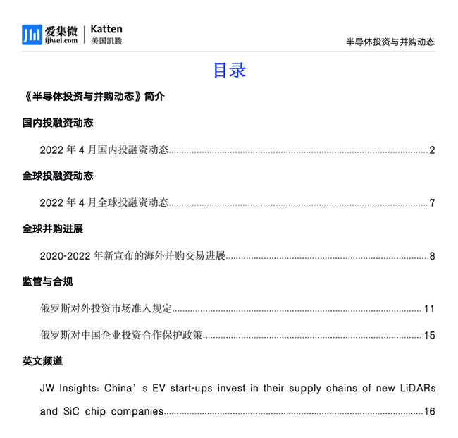 爱集微与美国凯腾律师事务所(Katten Muchin Rosenman LLP)联合推出《投资与并购动态》月刊。《月刊》全面整理中国半导体产业风险投资、并购及海外半导体并购信息,评析业内动态和重大交易案例,并介绍相关法规和实务。(校对人/Humphrey)