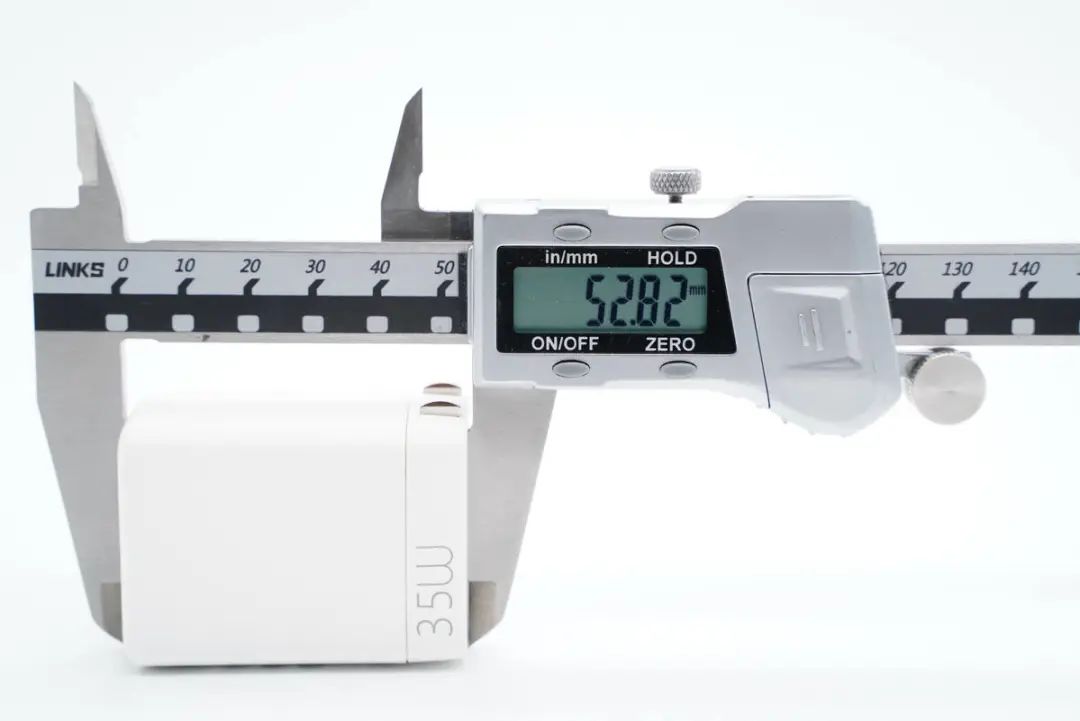 测得充电器机身高度为52.82mm。