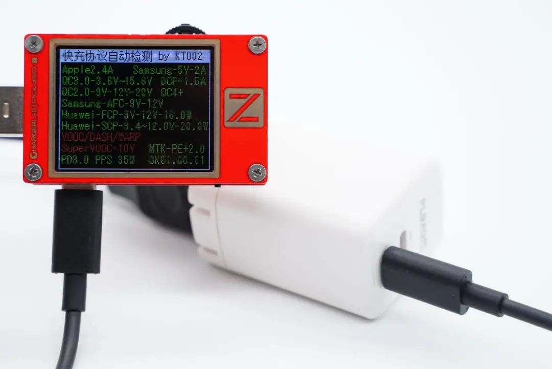 使用ChargerLAB POWER-Z KT002测得USB-C1口支持QC2.0/3.0、AFC、FCP、SCP、PE2.0、PD3.0、PPS快充协议。
