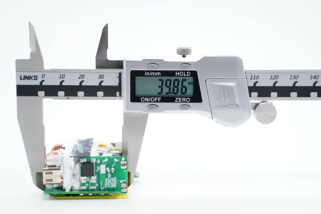 使用游标卡尺测得PCB长度约为39.9mm。