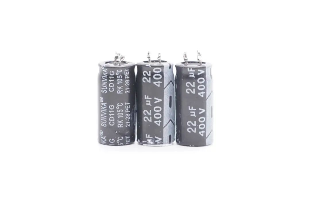 三颗高压滤波电解电容来自SUNVIKA三之佳电子,CD11G系列,规格均为22μF 400V。