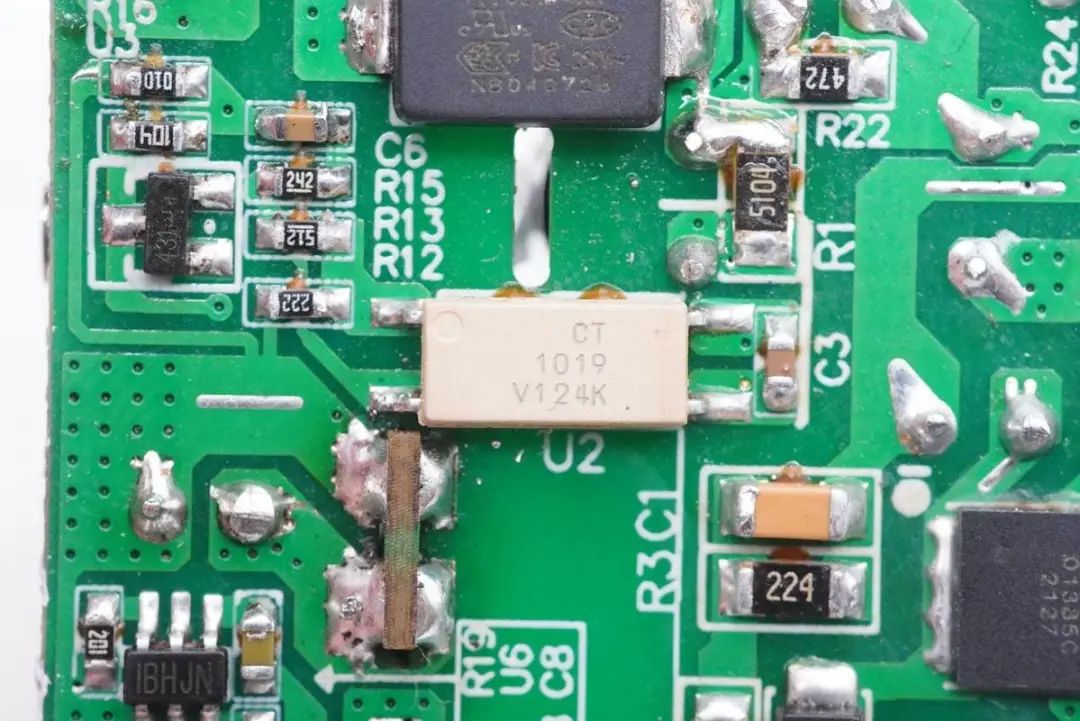 白色CT1019光耦,用于输出电压调节。