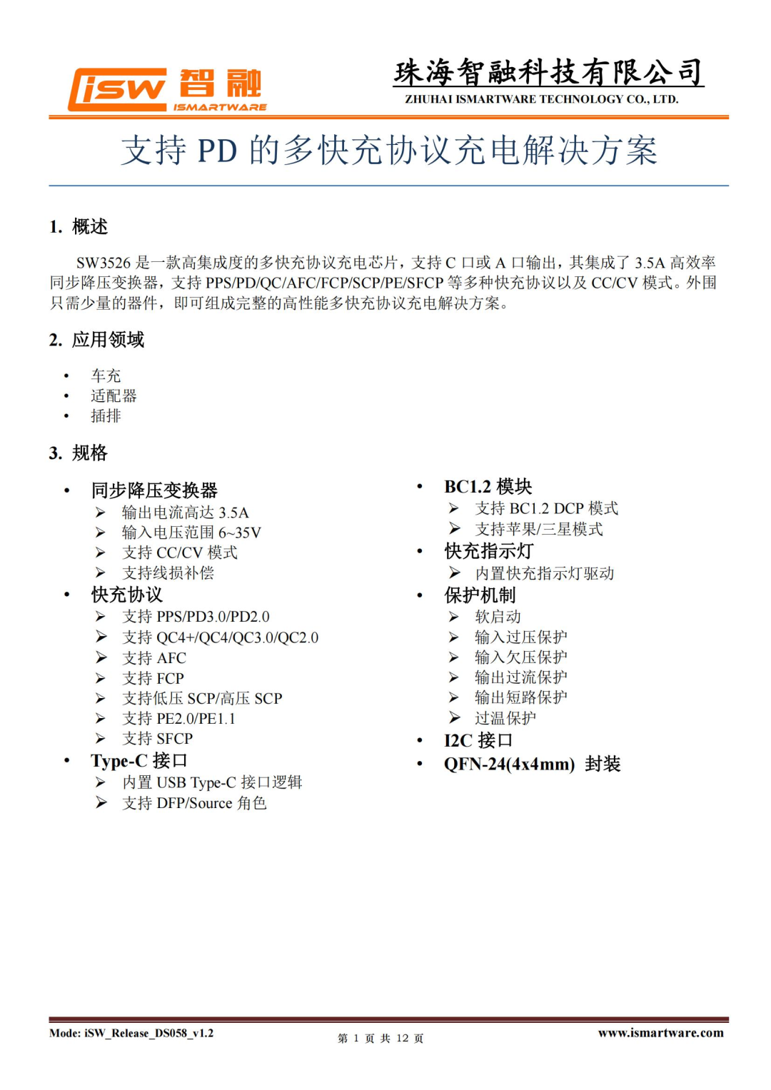 智融SW3526是一款高集成度的多协议充电芯片,支持USB-C口或者USB-A口降压输出,最高输出功率可达60W。芯片内部集成了3.5A高效率同步降压转换器,支持PPS、PD、QC、AFC、FCP、SCP、PE、SFCP、低压直充等充电协议,支持CC/CV模式,外部仅需少量器件,即可组成完整的高性能多快充协议充电解决方案。