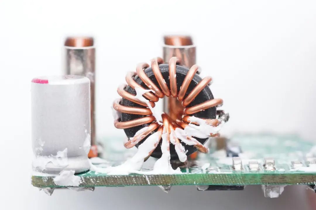 降压电感特写,采用磁环绕制。