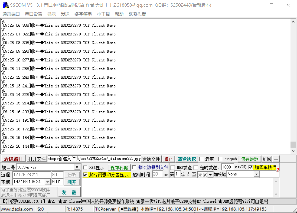 uint8_t send_buf[] = "This is MM32F3270 TCP Client Demo\n"; //(1)