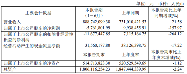 8月10日,凤凰光学发布公告称,今年上半年实现营收8.89亿元,同比增长21.58%;归属于上市公司股东的净利润为-576万元,同比由盈转亏;归属于上市公司股东的扣除非经常性损益后亏损1167.74万元,同比由盈转亏。