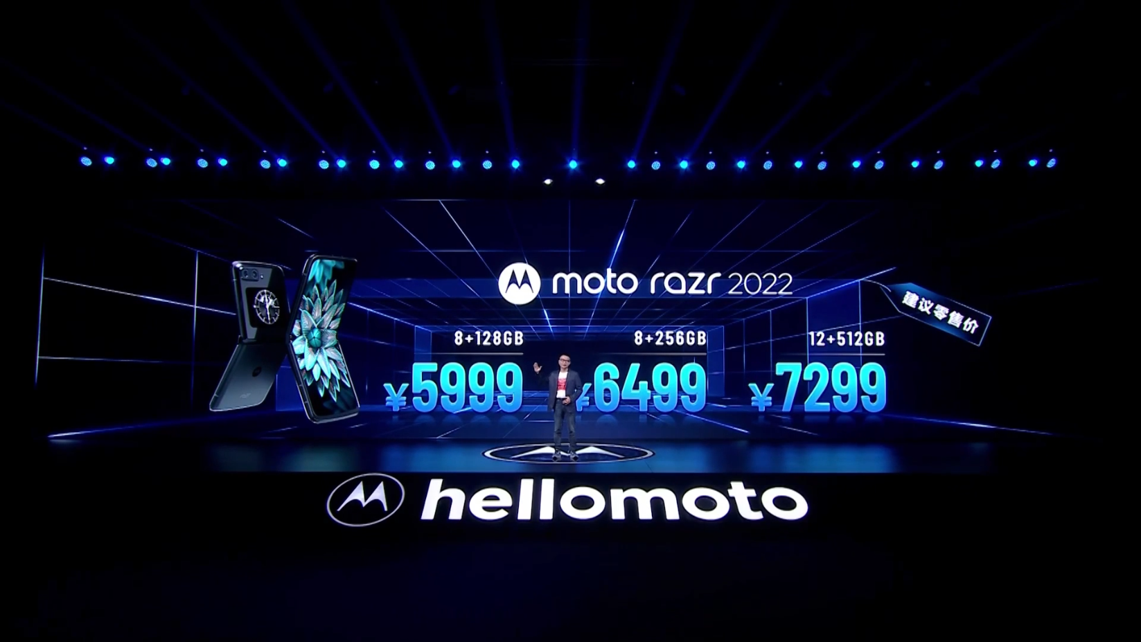 售价方面,moto razr 2022 8+128GB 售价 5999,8+256GB 售价 6499,而 12+512GB 顶配售价 7299。