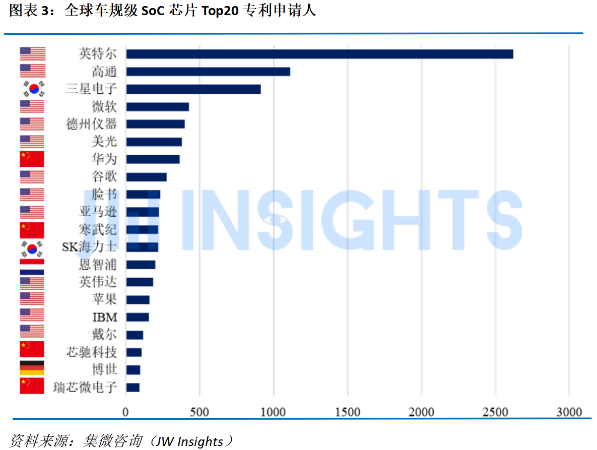 为揭示车规级SoC芯片行业的专利整体状况,集微咨询(JW Insights)推出《车规级SoC芯片行业专利分析》报告,就相关技术在中国、欧洲、美国、日本、韩国等不同地域的专利布局情况进行了详细梳理,分析了国内外车规级SoC芯片行业代表性企业的专利布局技术要点、发展历史,并解读了重点专利,对我国车规级SoC芯片创新主体的专利布局具有借鉴意义。同时,集微咨询(JW Insights)还发布了车规级SoC芯片行业中国大陆企业专利榜单,多维度解读企业专利现状,为公众和投资机构了解中国大陆企业在车规级SoC芯片技术上的知识产权竞争力提供直观的参考。