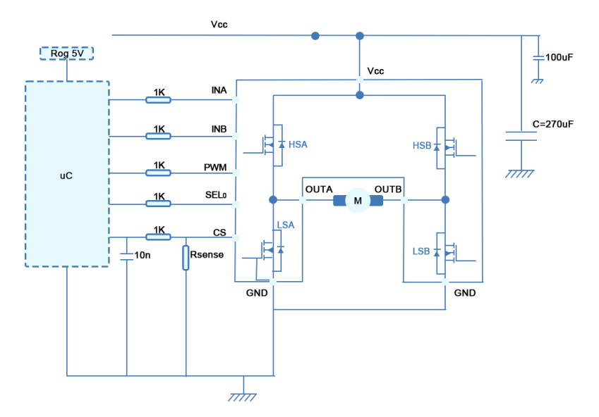 工作电压范围4V至40V,适用于各类汽车车身控制模块中的各种电机驱动。驱动器由逻辑控制,高低边驱动和功能保护模块组成,内置电流检测功能,集成charge pump电容,简化外围电路设计。同时产品具有全面的保护机制和故障诊断功能,为电机驱动工作提供极高的安全性和稳定性保护。
