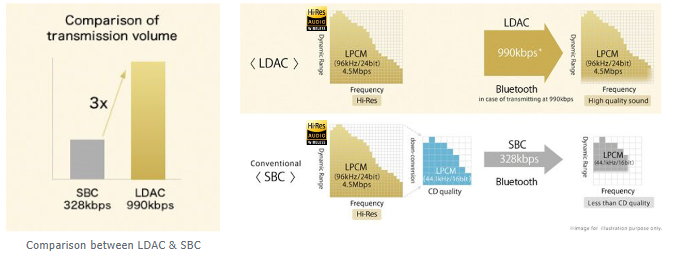 LDAC是获得“Hi-Res AUDIO WIRELESS”标志认证的一种音频编解码器。采用LDAC技术的产品可以符合“Hi-Res AUDIO WIRELESS”标志的认证标准,为消费者提供卓越的音频体验。