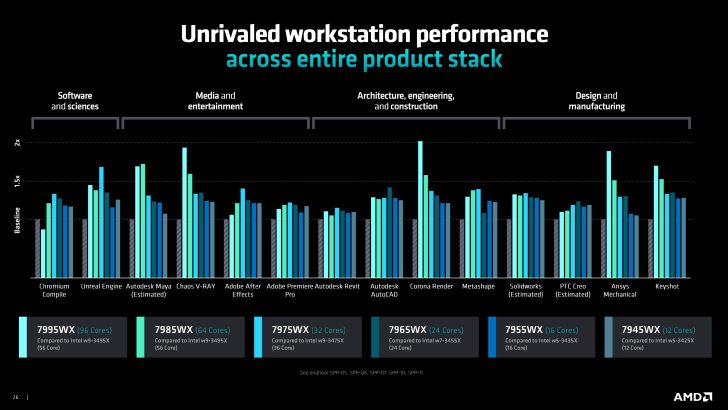 性能方面,多项跑分数据显示AMD锐龙Threadripper 7000系列处理器,在科学计算、多媒体处理、设计渲染、工程建模等领域的表现,均优于前代旗舰Threadripper 5995WX。此外与英特尔至强Xeon w9-3495X、3475X相比,也有显著提升。