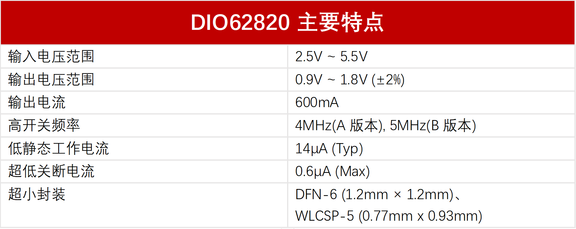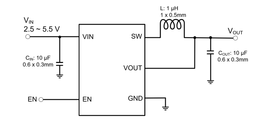 DIO62820是帝奥微推出的新一代高频高效、超小尺寸的600mA同步降压DCDC转换器,不仅能够提供高达5MHz的开关频率,同时允许使用尺寸为1.0mm x 0.5mm的1uH电感,以及0.6mm x 0.3mm的陶瓷电容作为输入电容CIN和输出电容COUT,有助于减少PCB面积及降低BOM成本。