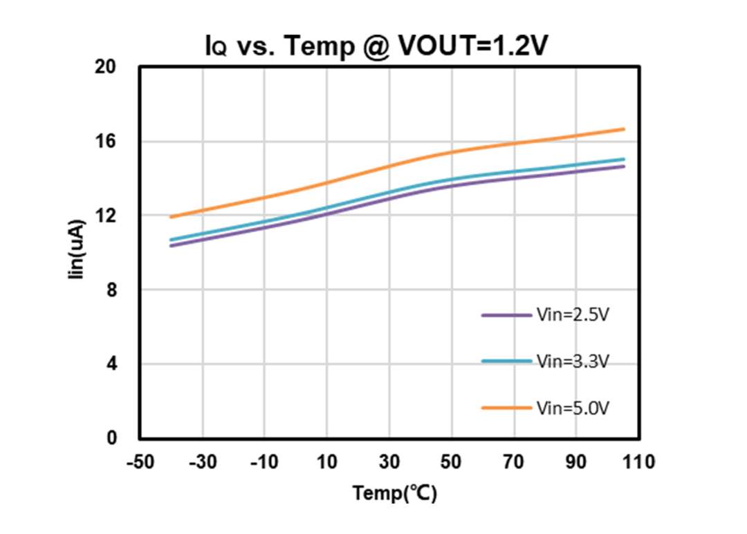 -40℃~105℃范围,输出电压1.2V,Iq典型值为14μA。