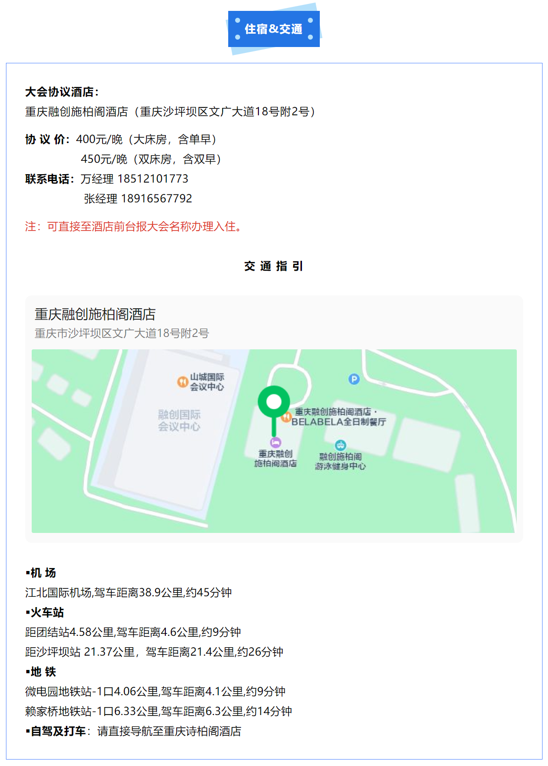 大会地址:山城国际会议中心(原名重庆融创国际会议中心),沙坪坝区文广大道18号附3号