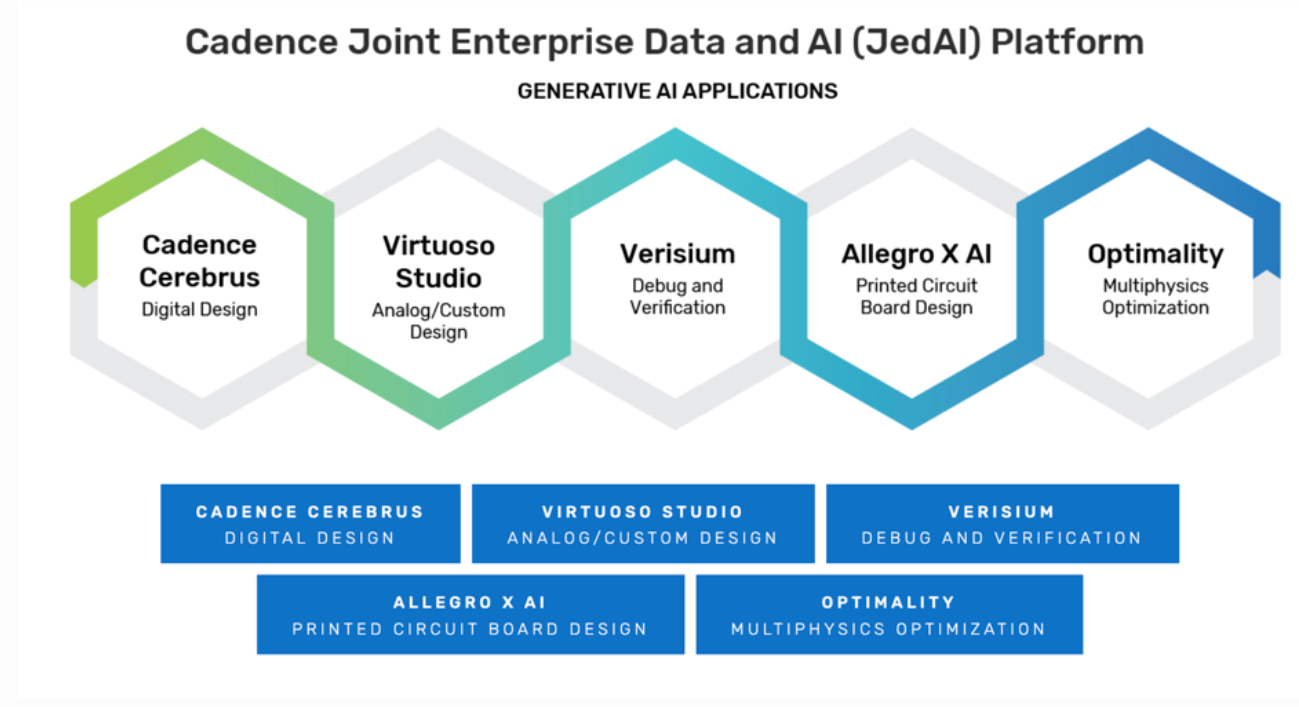 在过去的一年中,Cadence一直在构建和扩展其生成式人工智能产品组合,最近又宣布与瑞萨电子(Renasas)合作构建生成式人工智能,以提高半导体质量和设计团队的生产力。瑞萨电子高级副总裁兼CEO吉冈真一(Shinichi Yoshioka)表示,确保规范与设计之间的一致性至关重要,而验证成本随着设计功能的复杂性而增加。瑞萨电子与Cadence合作开发了一种新方法,利用生成式人工智能的LLM来应对这一挑战,通过有效控制设计质量,大大缩短了从规范到最终设计的时间。瑞萨电子也是Cadence Cerebrus芯片、Verisium人工智能驱动验证以及Cadence联合数据和人工智能(JedAI)平台的早期采用者,该平台通过设计和规则的通用数据库支撑整个设计流程。