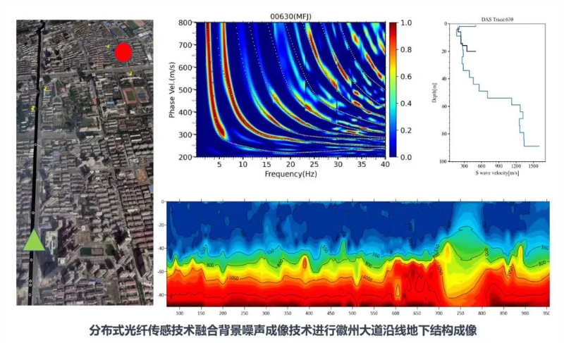 智地感知还将分布式光纤传感技术应用于地下空间探测领域,已经发展了领先的地球物理解释方法—背景噪声成像技术,可以将大地中杂乱无章的噪声记录变为可用信号,实现对地下空间的无源成像。城市中本身就存在着大量背景噪声,也同样密布大量的通讯光缆,团队通过利用既有的城市通讯光缆,收集城市地下背景噪音,并结合背景噪声成像技术,就像是给大地“做B超”,最终可实现对城市地下结构的三维精细刻画打造出城市地下地图。