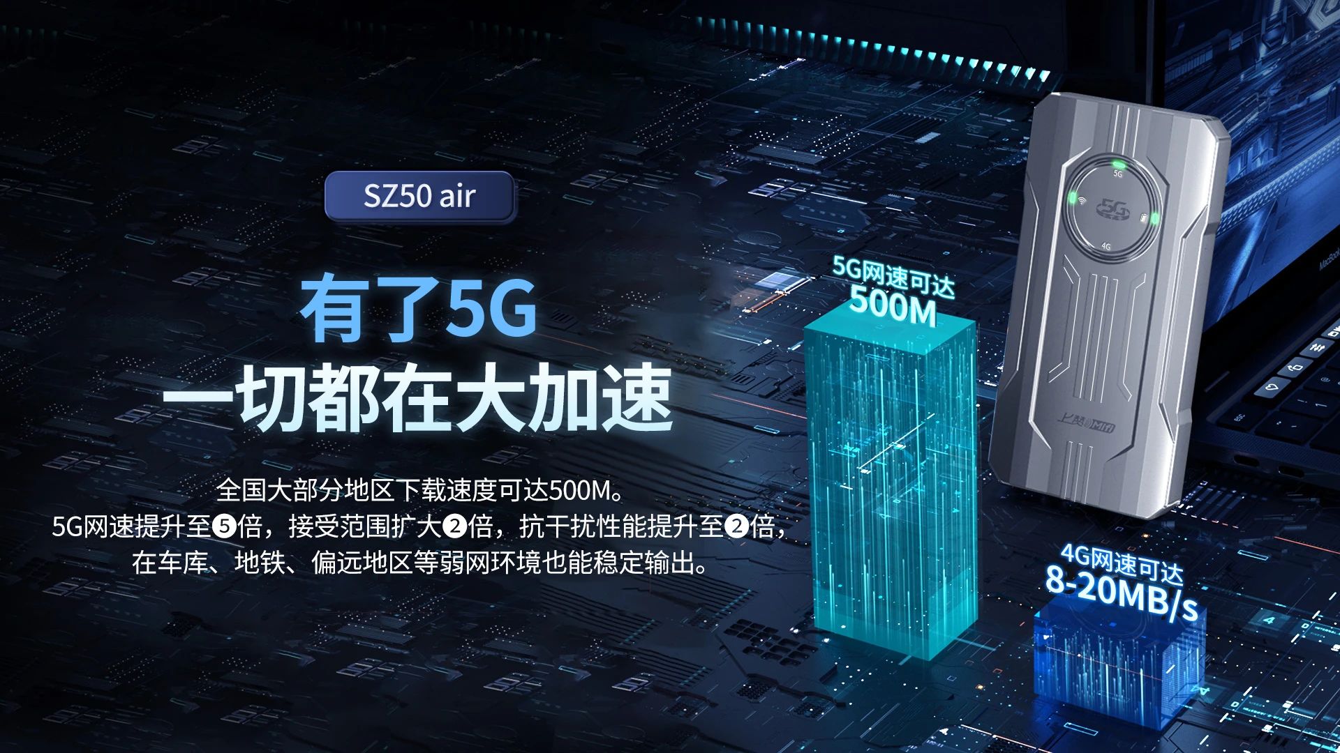上赞sz50 air机身采用赛博朋克极客风设计,一体机耐磨抗刮,搭配潮流包装外盒,颜值出众。作为用户的理想伴侣,外出携带、户外露营、游戏电竞、移动办公、户外直播,各种场景轻松拿捏,随时随地为用户提供网络支持。