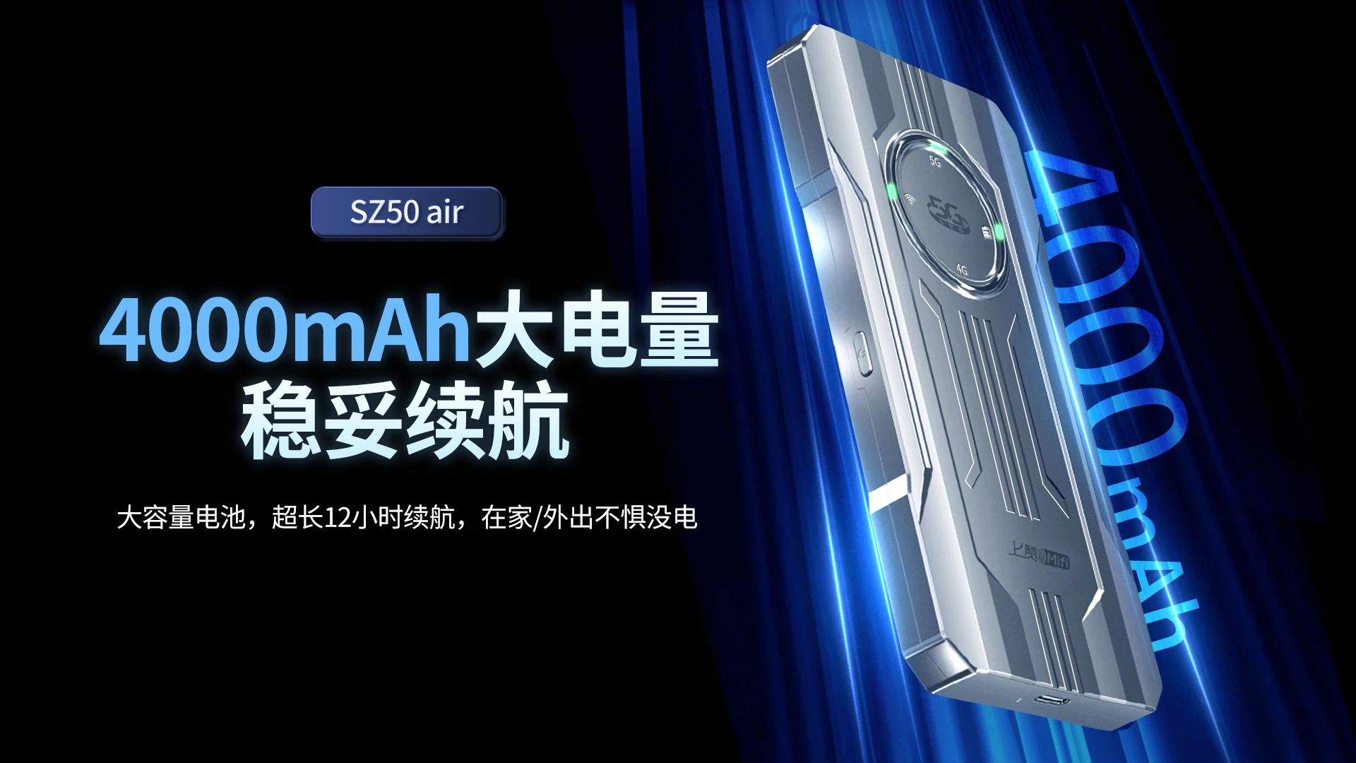 上赞sz50 air拥有强大的续航能力,内置4000mAh大容量电池,可实现7-12小时续航,为用户提供长时间的网络服务。同时,该终端可通过小程序对上网设备进行智能管理,随时查看设备用网情况,实现安全上网,有效避免蹭网威胁。