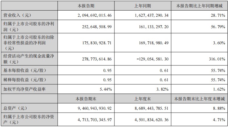 8月26日,江丰电子发布2025年上半年报告称,上半年,公司实现营业收入20.95亿元,同比增长28.71%;实现归属于上市公司股东的净利润2.53亿元,同比增长56.79%;扣除非经常性损益后的净利润为1.76亿元,同比增长3.6%。