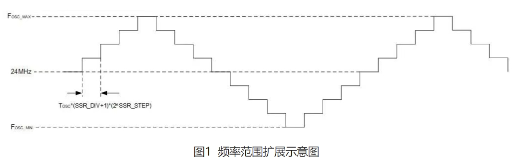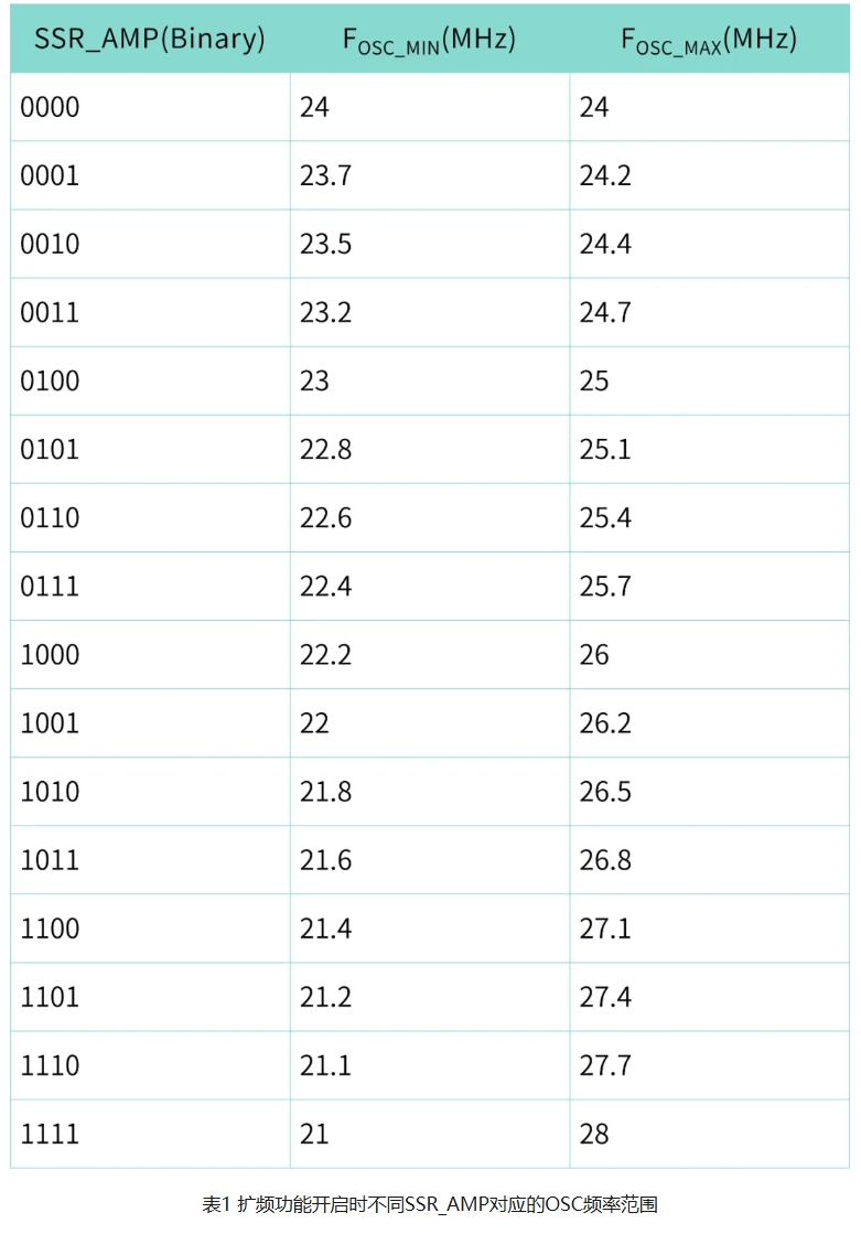 支持多种扩频范围选择,启用后,总的电磁发射能量会被分散到更宽的频带范围内,从而显著降低电磁干扰的峰值能量。