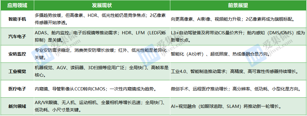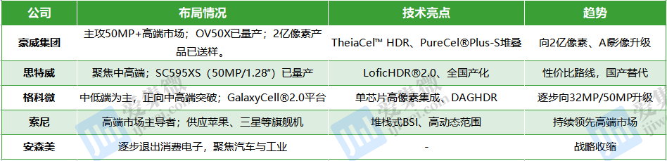 CMOS图像传感器(CIS)作为数字时代的“视觉之眼”,其应用已从智能手机延伸至汽车、安防、工业、医疗及众多新兴领域。本文基于豪威集团(韦尔股份)、思特威、格科微三家A股上市公司,以及索尼、安森美、意法半导体三家美股公司的公开资料,对其在各应用领域的市场表现、技术布局与发展趋势进行系统比对与分析。