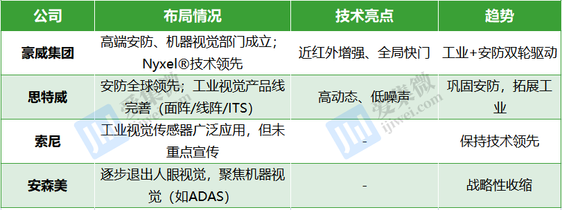 美股公司中,索尼的工业传感器在市场中占有一席之地,但并非其宣传重点。安森美明确将退出普通人眼视觉产品,未来其智能感知业务将差异化聚焦于ADAS等机器视觉应用。