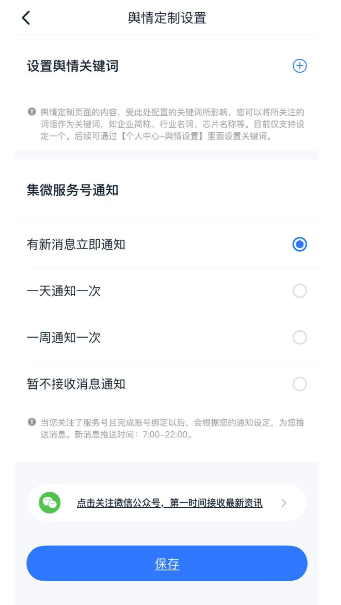 智能“配置”舆情信息,平台摒弃简单的内容搬运模式。所有用户可灵活“配置”自己需要的舆情监控——根据所关注的细分领域、技术路线、企业名录等偏好实现个性化定制。用户定制的不仅是一个信息频道,更是一套为其量身打造、动态演进的专属信息流。