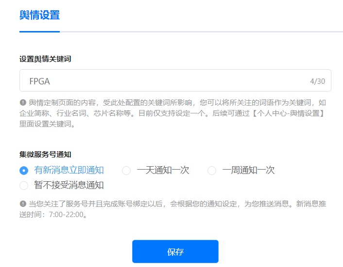 在实现全面覆盖的基础上,爱集微进一步突破传统信息平台的局限,完成了从“信息搬运”到“信息配置”的本质升级。用户可以通过爱集微“舆情设置”功能,根据自身关注的细分领域、技术路线或竞品名单,灵活定制专属的舆情监控方案,构建一个能够随需求动态演进的专属情报系统。