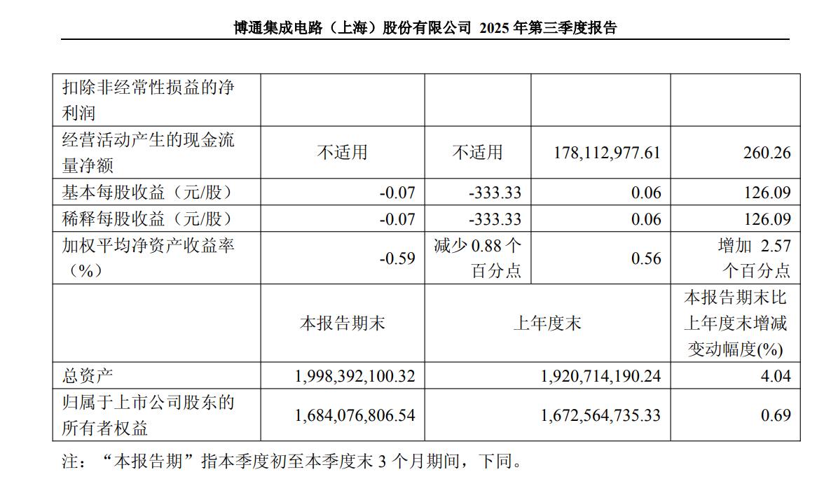 2025年前三季度,博通集成经营活动产生的现金流量净额达1.78亿元,相较去年同期的-1.11亿元实现转正,同比大幅增长260.26%。这一改善主要得益于公司销售商品、提供劳务收到的现金增加。