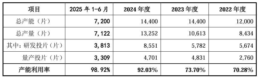 值得注意的是,公司在产能利用率计算上采用基于产能瓶颈环节的特殊方法,2022年至2025年上半年产能利用率分别为70.28%、73.7%、92.03%、98.92%。但这种计算方式可能无法真实反映其他工艺段设备的实际利用情况,在IPO审核中可能引发关注。