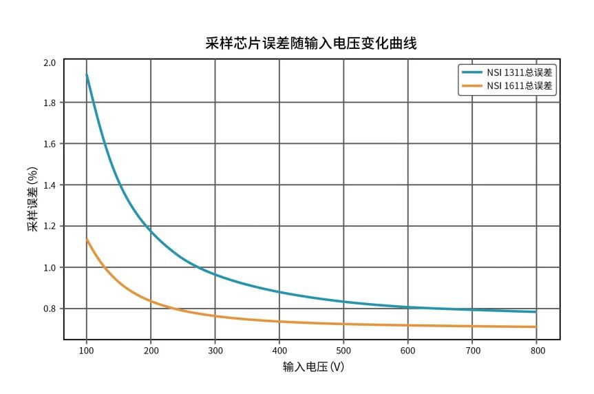 NSI1611和NSI1311的采样误差随输入电压变化曲线