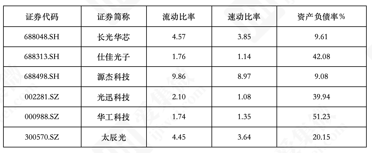 从短期偿债能力维度看,企业呈现 “光芯片领跑、模组与无源器件分化” 的格局,流动比率与速动比率的差异,深度关联光通信产业链不同环节的业务属性与资金管理策略,整体均高于行业安全线,短期财务风险可控。