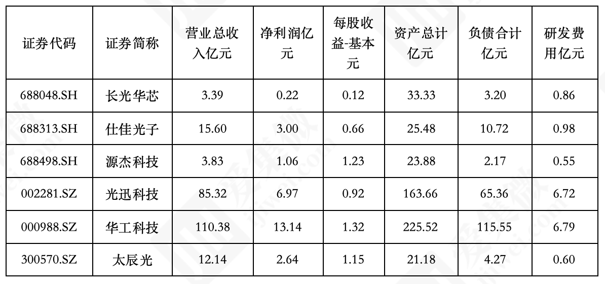 中国半导体上市公司数据方面,《报告》以长光华芯、仕佳光子、源杰科技、光迅科技、华工科技、太辰光这6家上市企业为样本,构建了全方位对标体系。